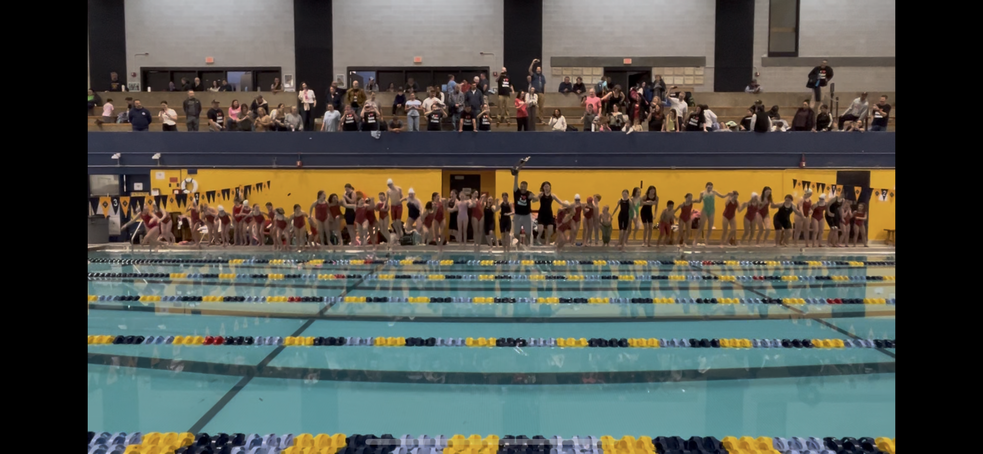 On Sunday February 8th, 2026, Tidal Waves Swim Team of the East Providence Boys and Girls Club once again took home the trophy at the RIMA Championship Meet. This was the third consecutive year that Tidal Waves has come in first at the meet, officially making it a three-peat! The boys team swam in the morning and ended their session with an almost 300 point lead over the next highest scoring team. The girls took over in the afternoon and increased that lead to almost 800 points over the second place team. When the scores were announced around 5:30 pm, all swimmers in attendance jumped into the pool with the trophy. (Coach Tony and Coach Alex even joined them in the water!) It was an incredible finish to a great season. A big thank you to the swimmers for their perseverance and hard work, the coaches for their time and dedication, the parents and grandparents for their support and encouragement, the officials and timers and volunteers for keeping the meets running smoothly, and the EPBGC staff for all they do to help our team. Everyone was part of this win!